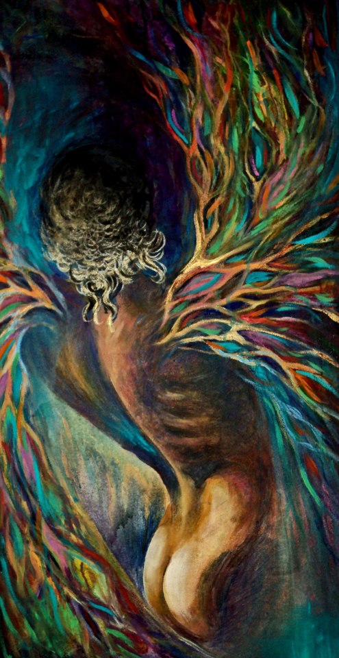 “A Men with a Fan” 36×24′ Acrylic and Glitter, stretched canvas