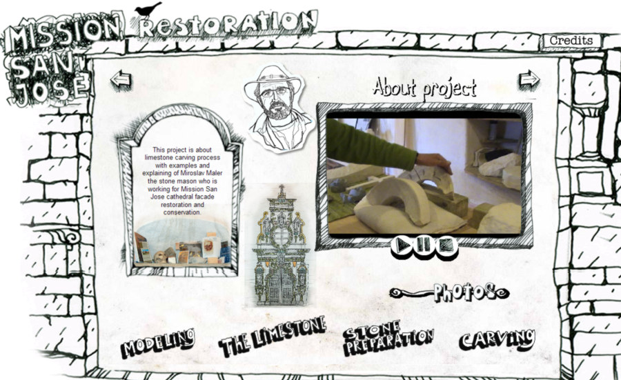 This project is about limestone carving process with video examples and explaining of Miroslav Maler stone mason who is working for San Jose Mission cathedral facade restoration and conservation. This ...